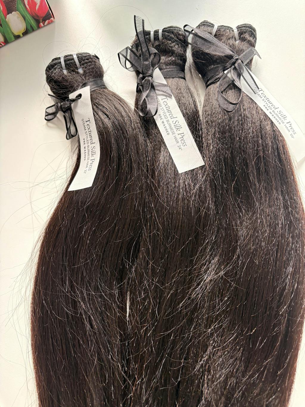 Your silk press just got personal. The Fine Babe set contains 3-4 of our Textured Silk Press Bundles made from premium-quality Burmese hair that has been steam-styled to maintain a high-texture silk press appearance. Designed for the type 4 girls who want a sleek texture match and that just-got-my-hair-done glow.